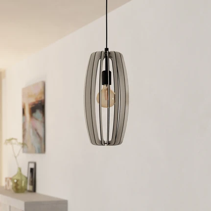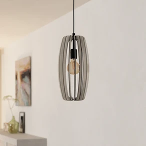 Jei norite sukurti jaukų, natūralų bendrą vaizdą, puikiai tinka pakabinami šviestuvai, pagaminti iš medžio masyvo arba derinami su natūraliomis medžiagomis, tokiomis kaip linas ar rotango mediena. Šiuose modeliuose pabrėžiamas šilumos ir jaukumo poreikis kambaryje. Industrinio stiliaus mėgėjai ras charakteringų sprendimų, kurie sukuria ryškius akcentus modeliuose su matomais rėmais, metaliniais paviršiais ar betono išvaizda.