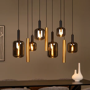 Ilgesnėms virtuvės salelėms tinka kelių liepsnų pakabinami šviestuvai. Jie užtikrina tolygų apšvietimą ir dizaino akcentus. Modeliai su keliais šviesos šaltiniais dažnai gali būti montuojami simetriškai arba šiek tiek sustyguotai. Kelios atskiros švytuoklės iš eilės sukuria ritmą ir struktūrą.