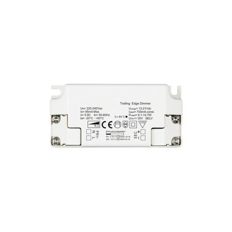 LED šviesos diodų maitinimo blokas nuolatinės srovės 350 mA 16 W Šis maitinimo blokas naudojamas maitinti šviesos diodų lemputes, kurios veikia nuolatine 350 mA ir 24-48 V įtampa ir kurių bendra galia ne didesnė kaip 16 W. Maitinimo bloką galima pritemdyti naudojant priekinio ir galinio krašto fazės valdymą.