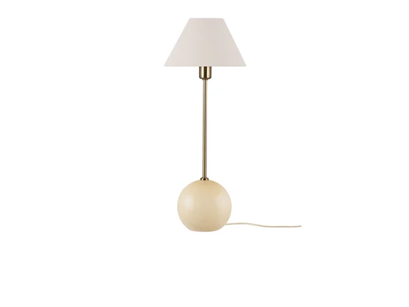 "Globen Lighting" stalinė lempa "Iris", kreminės spalvos, yra žavinga stalinė lempa, kuri savo linksma spalva ir išraiška suteikia gyvybės ir šviesos bet kokiam kambariui. Šią Erikos Norén sukurtą lempą įkvėpė klasikinė stalinė lempa su apvaliu pagrindu ir tradiciniu gaubtu. Pridėjus modernių detalių, pavyzdžiui, spalvoto stiklo pagrindą su unikaliais netaisyklingais burbuliukais ir prie pagrindo derantį medvilninį gaubtą, "Iris" tampa natūralia modernaus interjero dalimi. Šią lempą idealiai tinka statyti prie lango arba ant šoninio staliuko, kur ji gali skleisti jaukią šviesą. Šviestuvas turi 200 cm ilgio smėlio spalvos tekstilinį kabelį su jungikliu ir "Europlug" kištuku. Atkreipkite dėmesį, kad oro burbuliukai stikle yra skirtingo dydžio, todėl kiekvienas šviestuvas turi unikalų raštą. Todėl jūsų gauta lempa gali šiek tiek skirtis nuo paveikslėlių. Atraskite visą "Iris" asortimentą ir raskite tobulą šviestuvą savo namams.