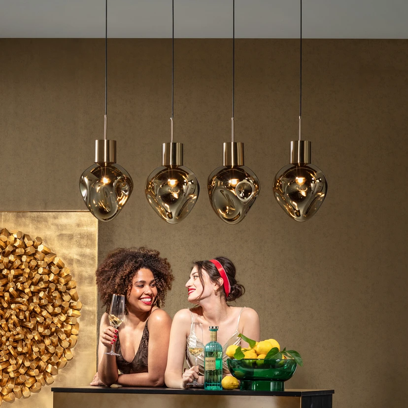 Pakabinamas šviestuvas „Supernova“ – tai stilingas dizaino objektas, kuriame suderintas aukštos kokybės stiklas ir tvirtas plienas. Dėl gintaro spalvos paviršiaus ir auksinių akcentų jis suteikia elegancijos bet kuriai patalpai. Šviestuvas idealiai tinka svetainei, valgomajai ar virtuvei ir sukuria nuotaikingą atmosferą, kurią pabrėžia jo neįprasta forma ir medžiagų derinys.