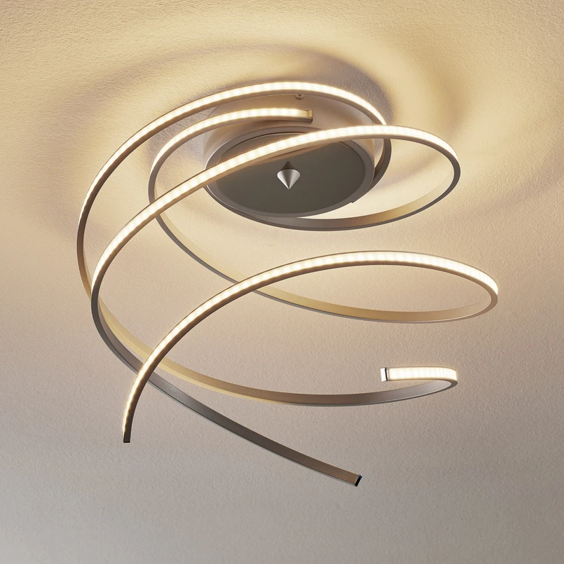Elegantiškai lenktas "Lungo" LED lubinis šviestuvas Modernus lenkto dizaino "Lungo" LED lubinis šviestuvas yra tikras bet kurio kambario akcentas. Integruoti energiją taupantys šviesos diodai švelniai apšviečia aplinką maloniu šiltos baltos spalvos tonu ir tolygiai šviečia į gyvenamąją erdvę be atspindžių. Nesvarbu, ar lubinis šviestuvas naudojamas svetainėje, prieškambaryje, ar miegamajame, jo moderni išvaizda ir efektyvi LED technologija tikrai padarys įspūdį bet kuriuo metu. Lungo LED lubinį šviestuvą galima reguliuoti tik naudojant pridedamą nuotolinio valdymo pultelį.