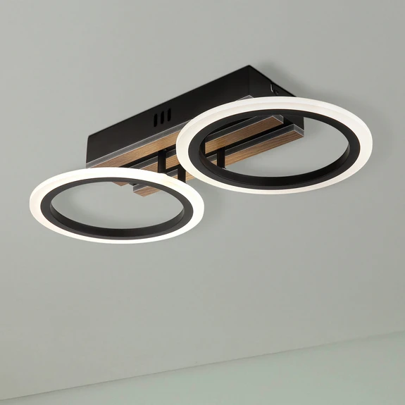 LED lubų šviestuvas „Blevins“ 2-flg. derina modernų dizainą ir funkcionalų universalumą. Harmoningas juodo metalo, medžio imitacijos ir opalo plastiko derinys suteikia patalpai stilingą ir šiuolaikišką atmosferą. Integruotas LED šviesos šaltinis užtikrina energiją taupančią apšvietimą ir yra ilgalaikis sprendimas įvairioms gyvenamosioms patalpoms, pvz., svetainei, valgomajai ar miegamajam.