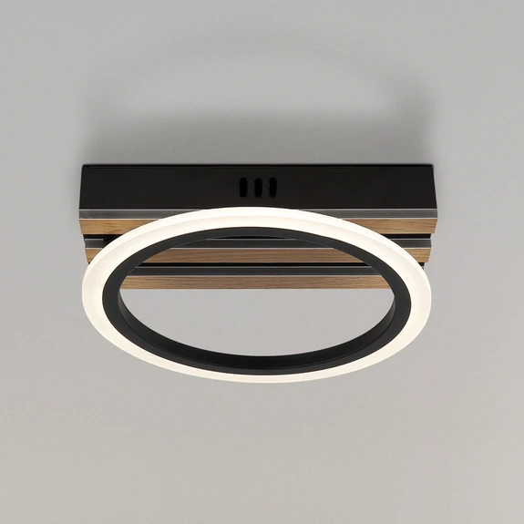 LED lubų šviestuvas „Blevins“, juodas matinis/medžio imitacija, Ø 25 cm