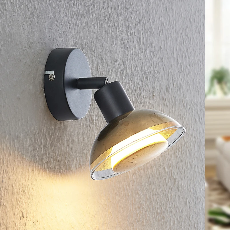 "Lindby" sieninis prožektorius "Erin", juodas/auksinis, Ø 12 cm, stiklas