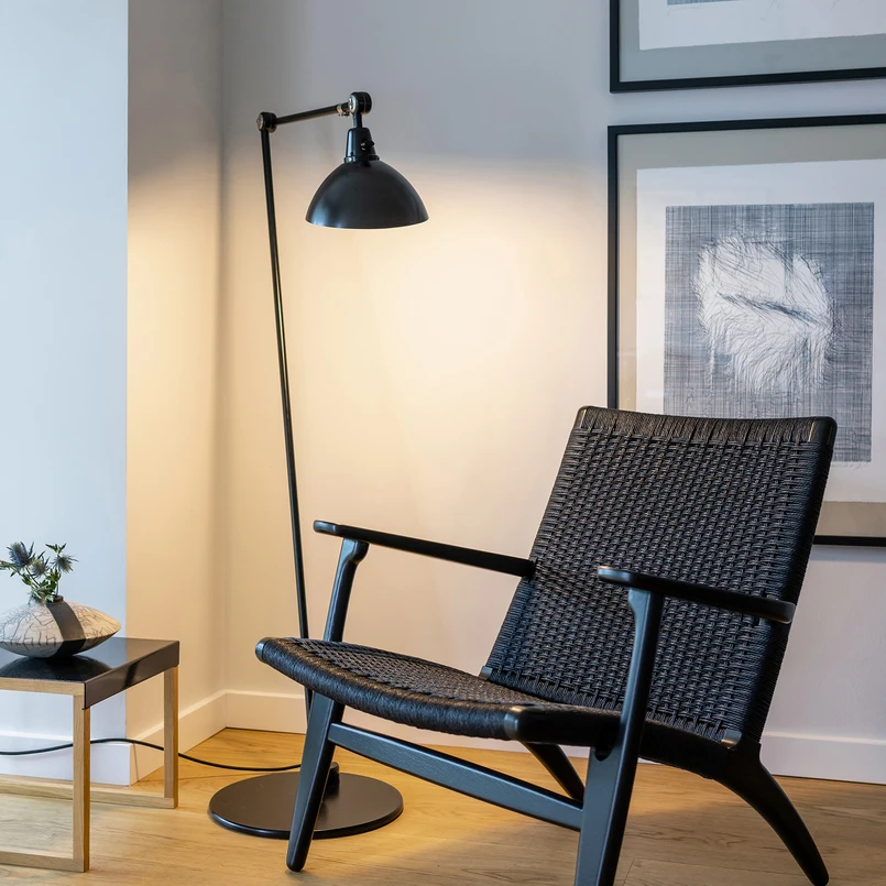 Reguliuojamas modulinis TYPE 556 grindų šviestuvas - aukštos kokybės klasikinio Bauhauzo stiliaus šviesos šaltinis Absoliučiai nesenstančio dizaino, nepriekaištingos gamybos ir išskirtinio lankstumo modulinis TYPE 556 grindų šviestuvas yra laukiamas beveik bet kurioje aplinkoje. Dizainas paprastas ir orientuotas į funkcionalumą: apvalus pagrindas remia rėmą, sudarytą iš dviejų plonų plieninių rankenų, ant kurių pritvirtinta nupjauto kūgio formos aliuminio galvutė su šiek tiek pasvirusiu šviesos skleidimu. Dėl trijų jungčių, pagamintų iš spalviškai kontrastingo metalo, šviesos sklidimo kryptį galima puikiai reguliuoti pagal atitinkamus reikalavimus. Modulinis TYPE 556 turi ant gaubto dangtelio esantį sukamąjį jungiklį, skirtą valdymui, o maitinimo jungtis atliekama kištukiniu kabeliu juodu tekstiliniu apvalkalu. Originalią šios serijos šviestuvų koncepciją XX a. ketvirtajame dešimtmetyje sukūrė Curt Fischer (1890-1956). Inžinierius laikomas "valdomos šviesos" išradėju - ši idėja ypač ryški šiame grindų šviestuve. Fischerio įkurta bendrovė "Midgard" iki šiol yra atsakinga už šių šviestuvų gamybą ir gamina juos, įskaitant visus komponentus, Vokietijoje.