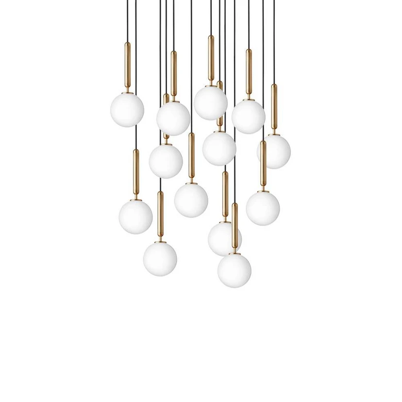 Elegantiškas šviestuvas „Miira 13 Large“ iš žalvario su opalo stiklo rutuliais