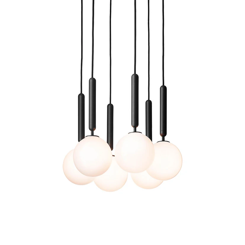 Miira 6 šviestuvas, pagamintas iš optinio stiklo, žavi savo minimalistiniu, aiškiu dizainu ir šešiais rankų darbo pakabais. Jie skleidžia švelnią, harmoningą šviesą, kuri sukuria ramią ir jaukią atmosferą. Prieš montavimą pakabų aukštį galima reguliuoti individualiai, todėl galima sukurti įvairius šviesos vaizdus ir asmeninius derinius.