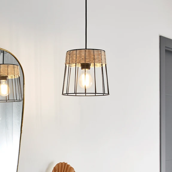 Pakabinamas šviestuvas „Indah“ derina metalo tvirtumą su natūralia rotango išvaizda. Šių medžiagų derinys sukuria unikalią pusiausvyrą tarp pramoninio žavesio ir natūralaus šilumo. Juodos ir natūralios spalvos derinys puikiai dera prie įvairių interjero stilių ir suteikia stilingų akcentų.