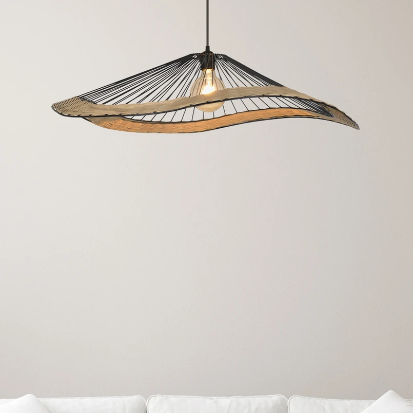 Pakabinamas šviestuvas „Mekong“: harmoningas metalo ir rotango derinys