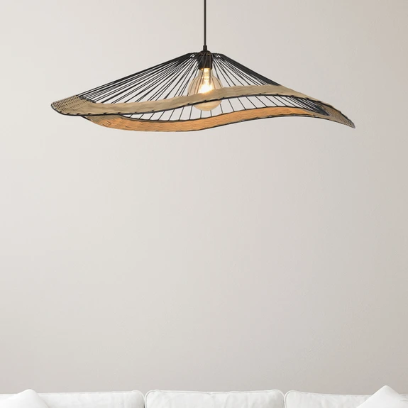 Pakabinamas šviestuvas „Mekong“ derina tvirtą metalą su natūraliu rotangu ir taip sukuria unikalią pusiausvyrą tarp pramoninio žavesio ir šilto, organiško dizaino. Kontrastingas juodo metalo ir natūralios spalvos rotango derinys suteikia šviestuvui nesenstančią eleganciją, kuri sklandžiai įsilieja į įvairias gyvenamąsias erdves, pavyzdžiui, svetainę, valgomąjį, virtuvę ar prieškambarį.
