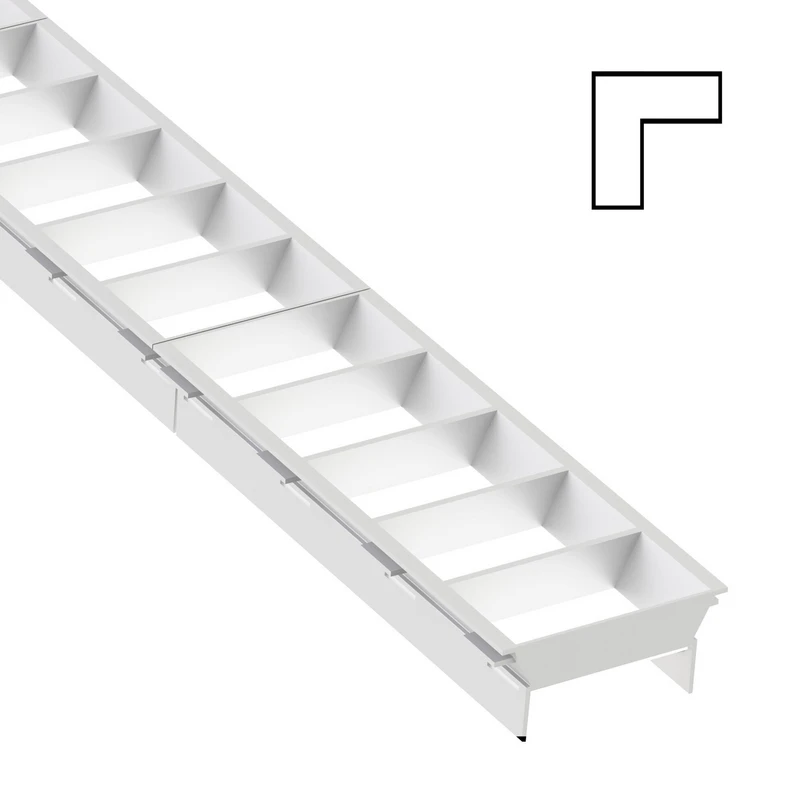 Ši lamelių grotelė skirta L formos kampiniams „Click“ šviesos juostos moduliams. Ji sumažina tiesioginės šviesos akinimo efektą.