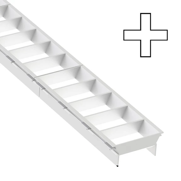 Ši lamelių grotelė skirta X formos kampiniams šviesos juostos „Click“ moduliams. Ji sumažina tiesioginės šviesos akinimo efektą.