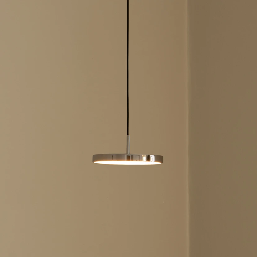 UMAGE LED pakabinamas šviestuvas Asteria Micro derina minimalistinį dizainą ir aukštos kokybės medžiagas. Pagamintas iš poliruoto plieno, aliuminio ir akrilo, jis suteikia stilingą akcentą gyvenamajame kambaryje, valgomojoje ar virtuvėje. Integruotas LED šviesos šaltinis užtikrina malonią šiltą baltą šviesą (3000 K), kuri sukuria jaukią atmosferą.
