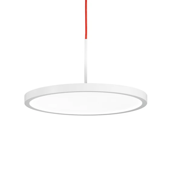 Puristinis LED pakabinamas šviestuvas VIVAA 2.0 labai plokščio dizaino Be puristinio, bet elegantiško dizaino, VIVAA pakabinamas šviestuvas turi raudonos spalvos tekstilinį kabelį. Dėl šios detalės jis traukia akį ir sukuria aiškų akcentą bet kurioje biuro aplinkoje, kuriai, be kita ko, ir buvo sukurtas. Apvalus aliuminio korpusas turi mikroprizmatinį dangtelį, kuris labai tolygiai paskirsto šviesą ir neakina. Apšviečiama ne tik tiesiogiai žemyn, bet didelė dalis šviesos sklinda ir netiesiogiai į viršų bei atsispindi nuo lubų ir sienų. Dėl didelio spalvų perteikimo išgaunamos ypač natūralios spalvos, o kartu su tinkamumu ekranui užtikrinamas aukštas regėjimo komforto lygis. Šviesos ryškumas gali būti reguliuojamas naudojant DALI - DALI dimmable - Screen-compatible in accordance with EN 12464-1